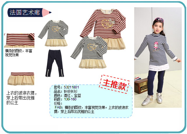 推薦理由:高領(lǐng)條紋設(shè)計(jì)帶來豐富的視覺效果,帶票波浪衣擺更顯寶貝活潑可愛
