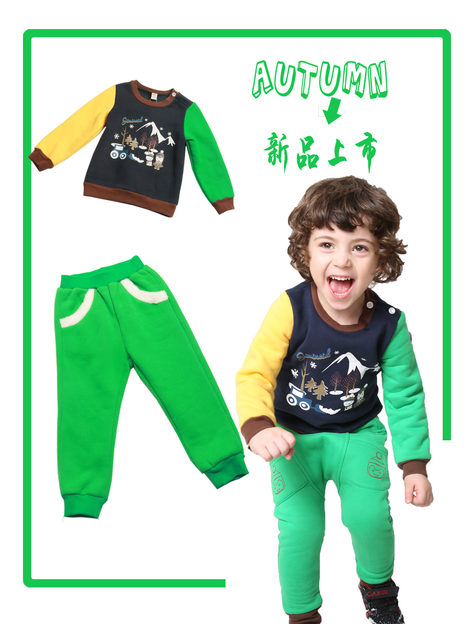 對比鮮明的用色,秋日里跳脫沉悶氣氛。杰米蘭帝logo形象圖案,這一款表現(xiàn)明快、活潑、開朗、自信,讓小孩子享有獨(dú)特的靈氣,在開學(xué)季里做一只秋日里的精靈。配上褲子上logo的生動形象點(diǎn)綴了草綠的褲子,時(shí)刻閃耀品牌的光輝。