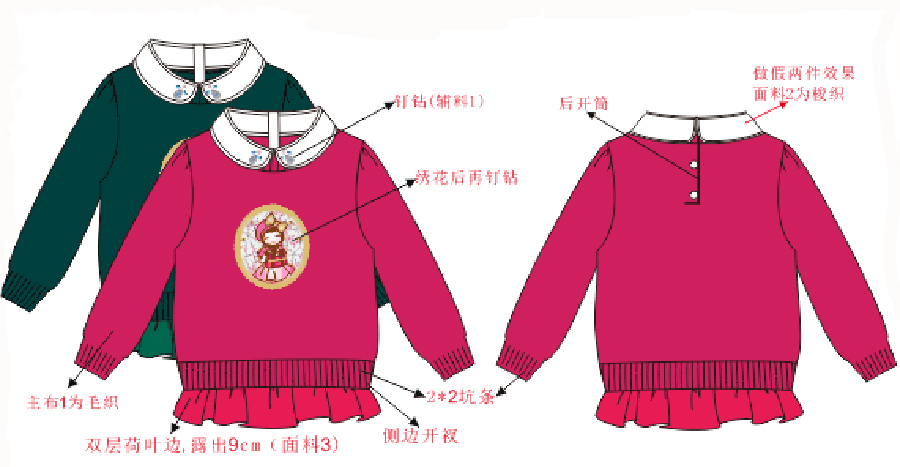FAB:上衣的波浪衣擺,穿上后帶出優(yōu)雅的公主。潘潘領(lǐng)的這幾,帶出甜美可愛的氣質(zhì)
