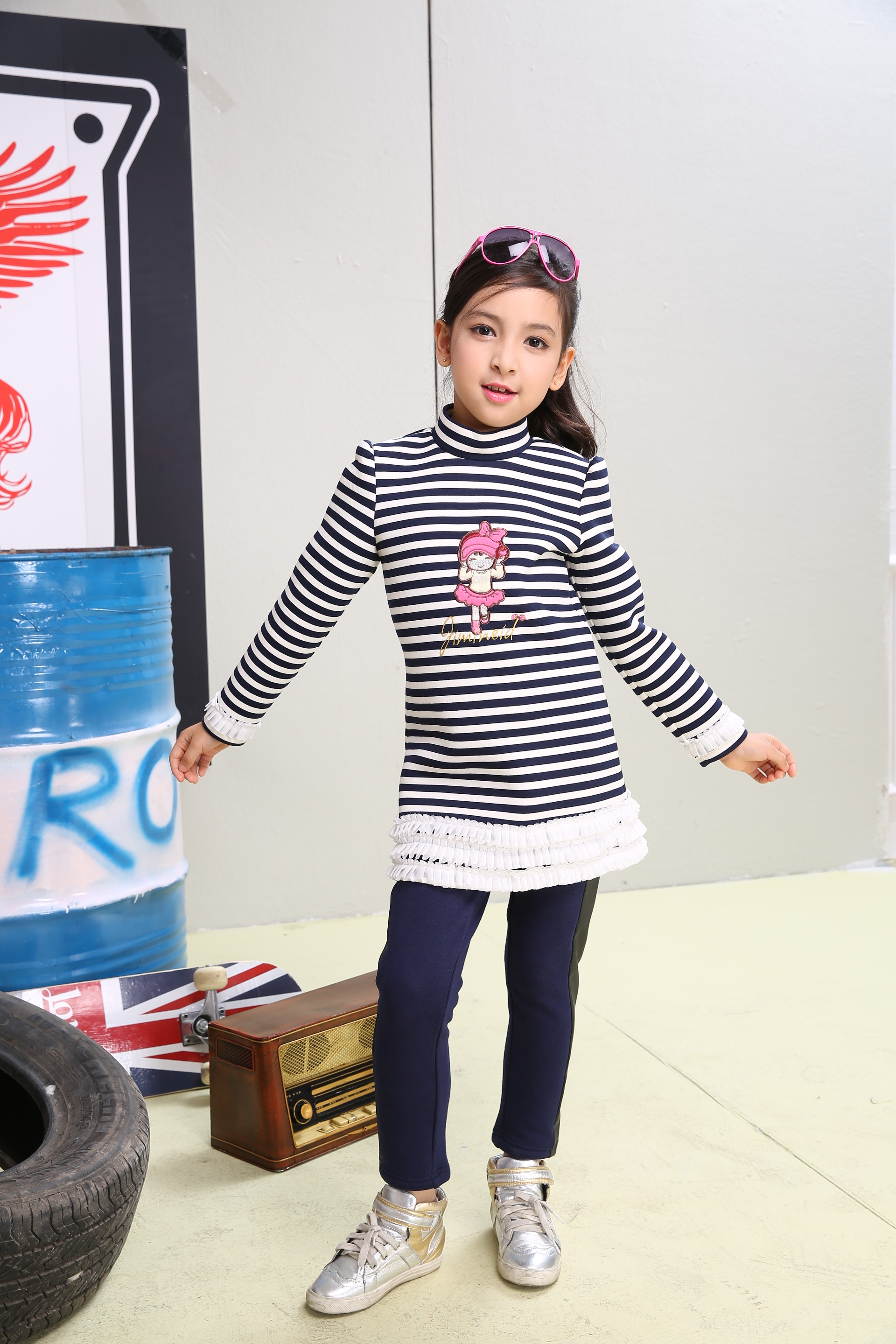 輕時(shí)尚條紋,,小蘭帝可愛童年的微笑,俏皮可人,搭配清透的加絨的暖暖長褲,濃濃的文藝格調(diào)。