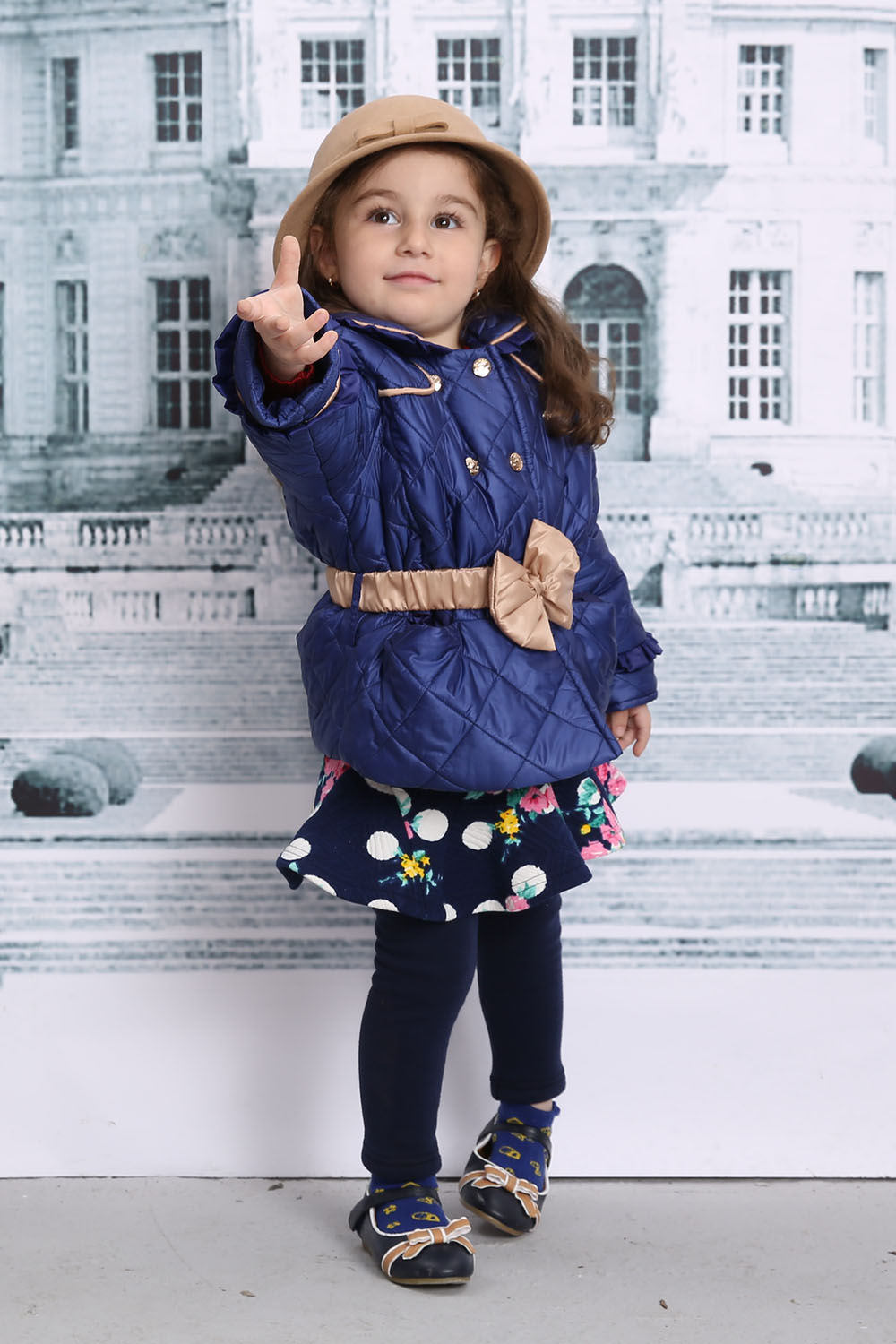 寶藍(lán)色棉衣+深藍(lán)色褲裙