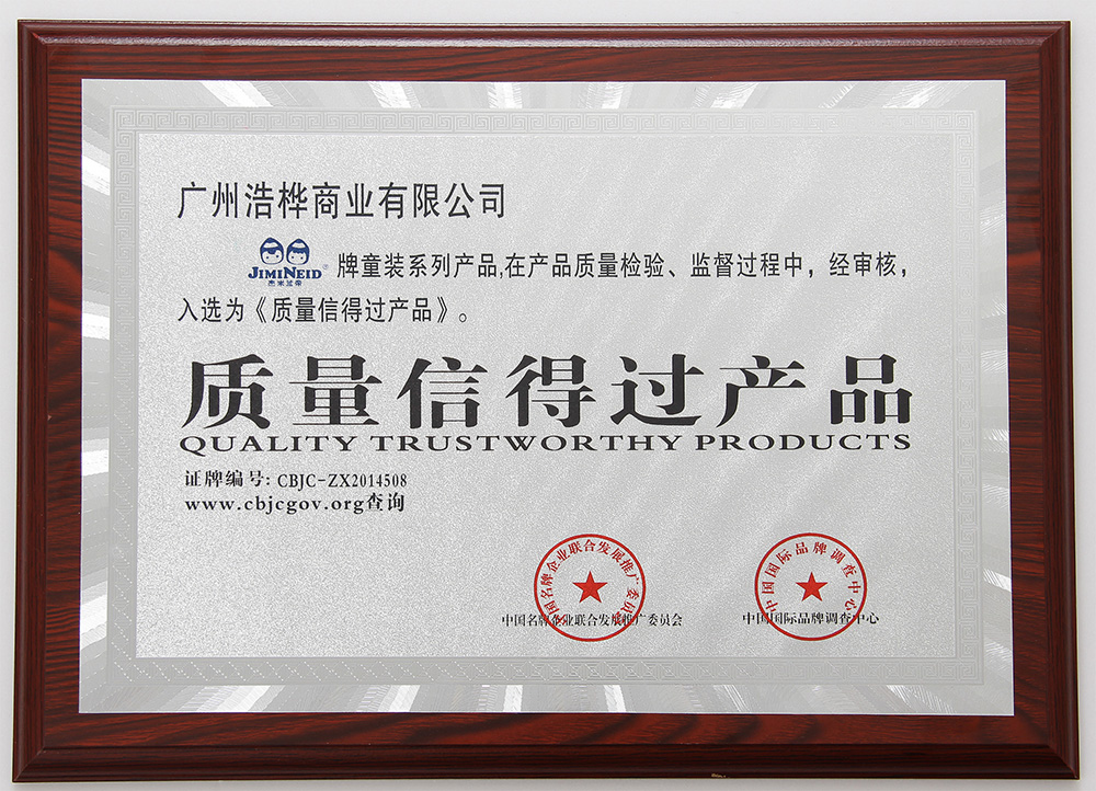 2016年初歲末,杰米蘭帝對自身的發(fā)展進行一個回顧,在過去的幾年,杰米蘭帝員工經(jīng)過不斷的努力拼搏,品牌逐漸得到了社會各界和行業(yè)內(nèi)的熟知與肯定,品牌曾榮獲行業(yè)內(nèi):“中國童裝行業(yè)暢銷品牌”、“中國名優(yōu)產(chǎn)品”、“中國著名商標(biāo)準(zhǔn)”、“中國名牌企業(yè)聯(lián)合發(fā)展推廣委員會優(yōu)秀單位”等的榮譽,其中在2014年7月,榮獲“質(zhì)量信得過產(chǎn)品”。