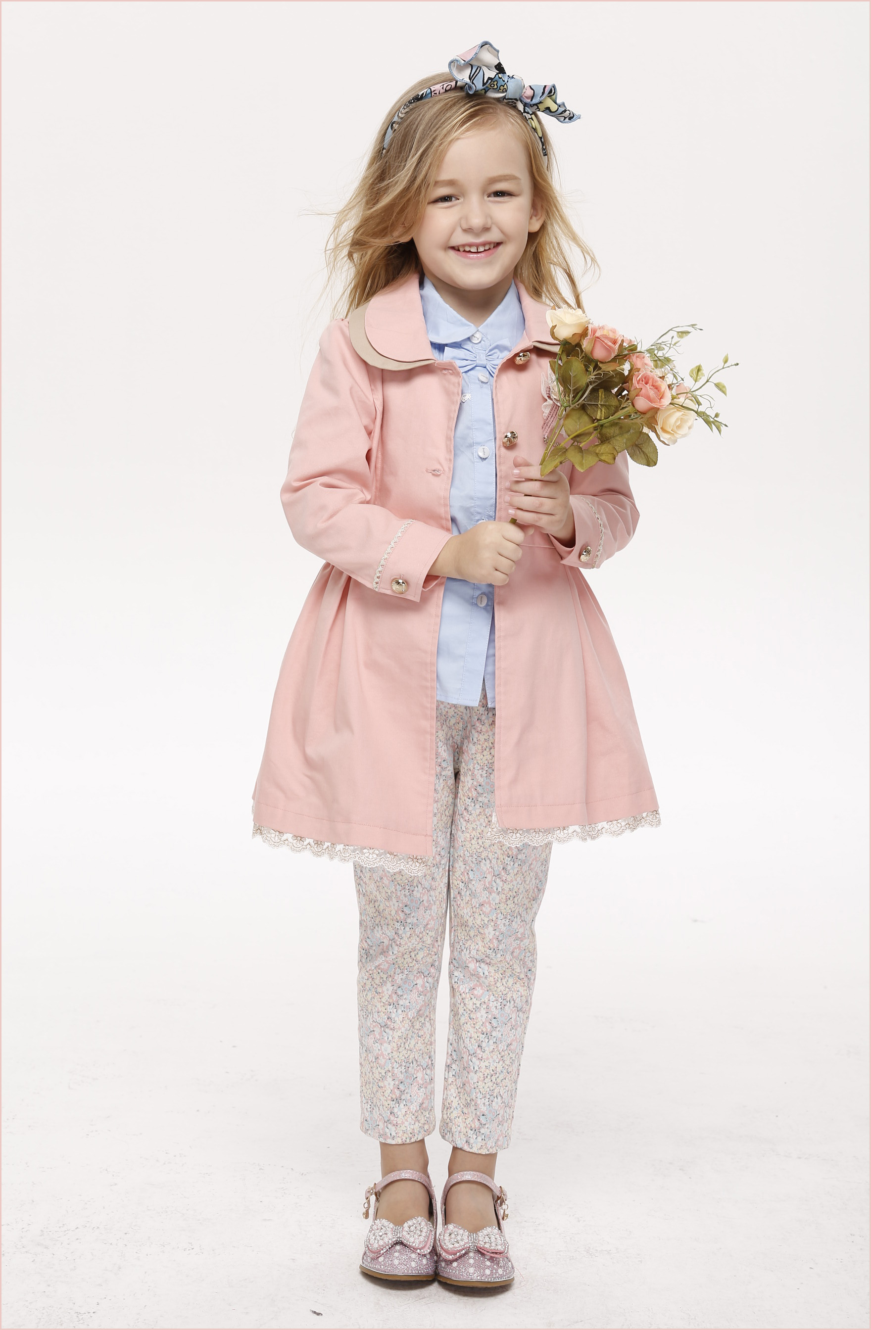 風衣外套已經(jīng)不僅僅是成人春天必備單品,小孩的風衣單品必備想必無人反對,粉紅風衣配碎花緊身長褲,夠文藝又不高冷。這個春天想時髦,記得要有一件中長款風衣喲!