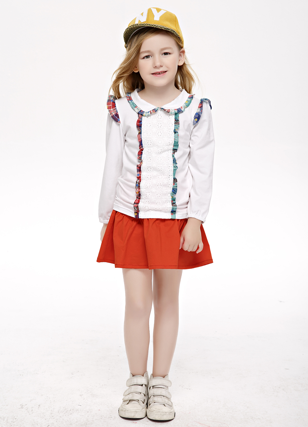 白色小飛袖配短裙柔美浪漫,白色果然是白搭。與橙色短裙和小白鞋搭配,彰顯清新活力,文藝范少女風(fēng)。