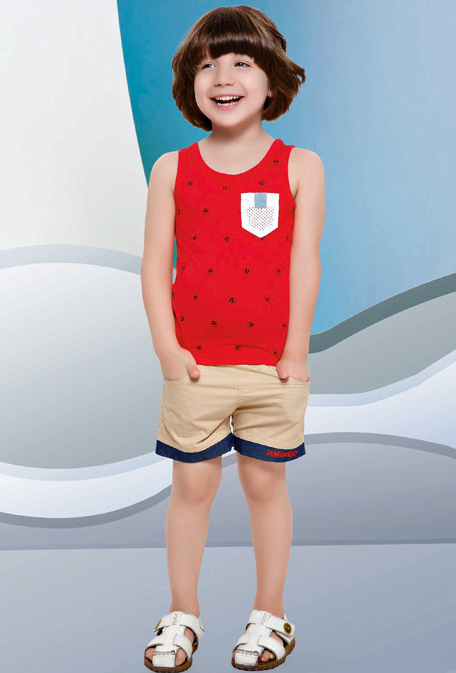 潮童萌搭選擇蘭帝logo印花小背心搭小短褲營造活潑俏皮可愛的形象。