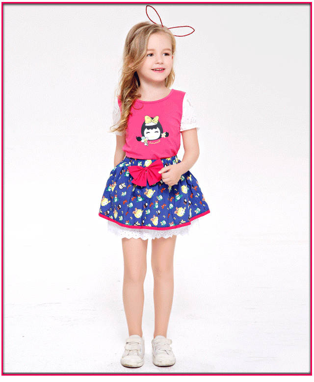 搭配TIPS:圓領(lǐng)T恤蕾絲元素拼接,形象印花設(shè)計(jì),搭蓬松碎花短裙,打造個(gè)性俏皮的小美女,萌翻一片!