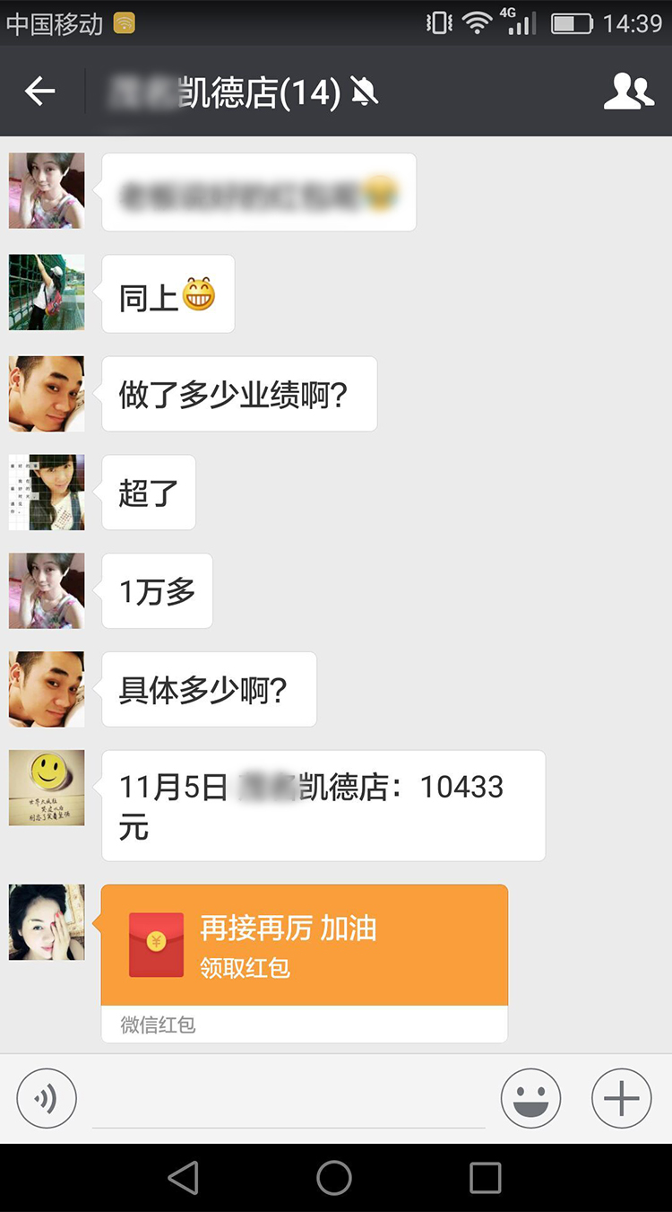 可喜可賀,開(kāi)業(yè)當(dāng)天,業(yè)績(jī)突破2萬(wàn),借此感謝杰米蘭帝人的努力。李小姐給予微信紅包形式,進(jìn)一步激勵(lì)杰米蘭帝人再接再厲,創(chuàng)造更好的銷(xiāo)售業(yè)績(jī)。