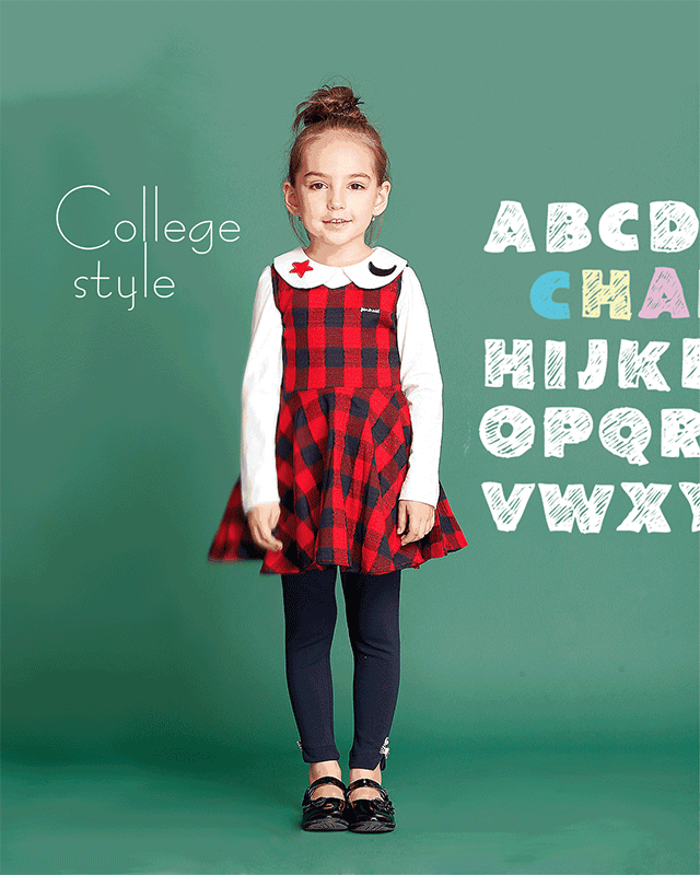 格紋梭織背心短裙搭配長T恤,以格子圖紋為特點,再配一雙以漆皮鞋面設(shè)計,具有質(zhì)感的牛津鞋,有一種簡便,高貴的英格蘭風格,站在同學(xué)的面前,一定能夠成為同學(xué)們的焦點,信心倍增。