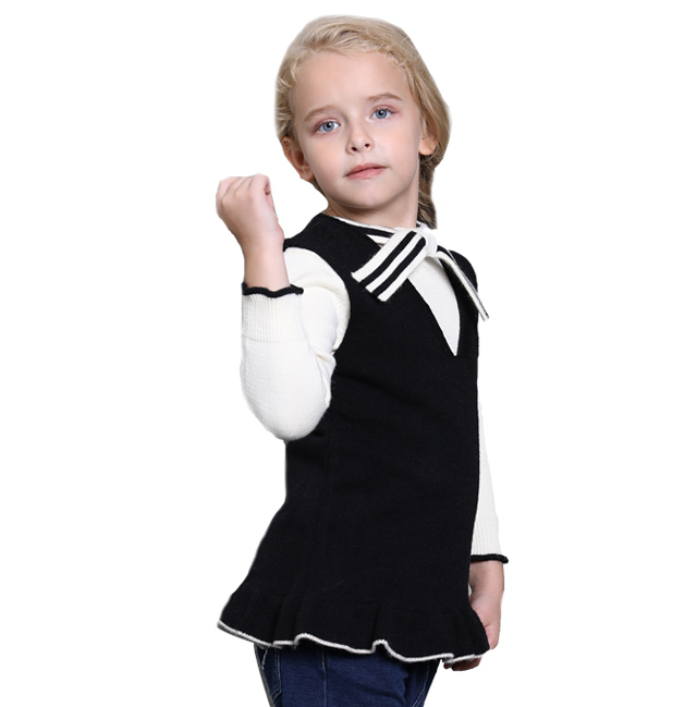 紅色卡通圖案毛衣內(nèi)搭白色襯衫